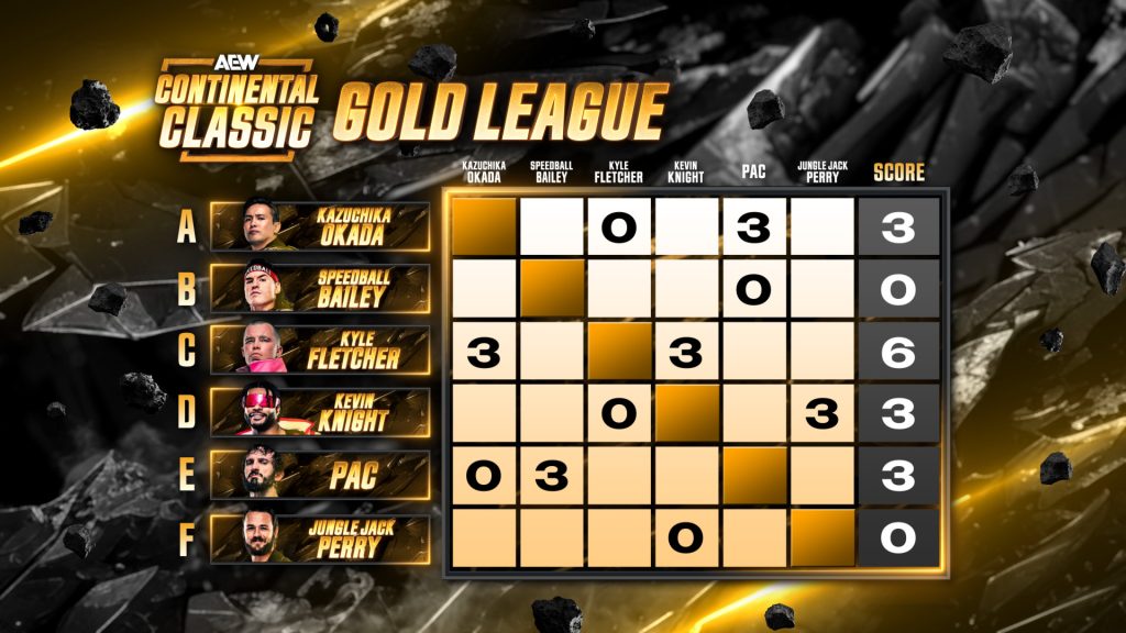 At World’s End on December 27th, 2025 live on pay per view, the winner of the Gold League will face second place of the Blue League. The winner of the Blue League will face second place of the Gold League. The winners of these matches will face each other later on the show to determine the 2025 winner of the Continental Classic and the AEW Continental Champion.