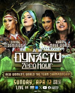 It took me a while to find the last time Hyan and Maya World wrestled in AEW in a tag team match. It was January 3rd, 2026 against the Timeless Love Bombs. They lost. They also lost at Worlds End against Sisters of Sin and Babes of Wrath in December. They literally do not have a tag team win in All Elite Wrestling and they are getting a title shot against Divine Dominion?